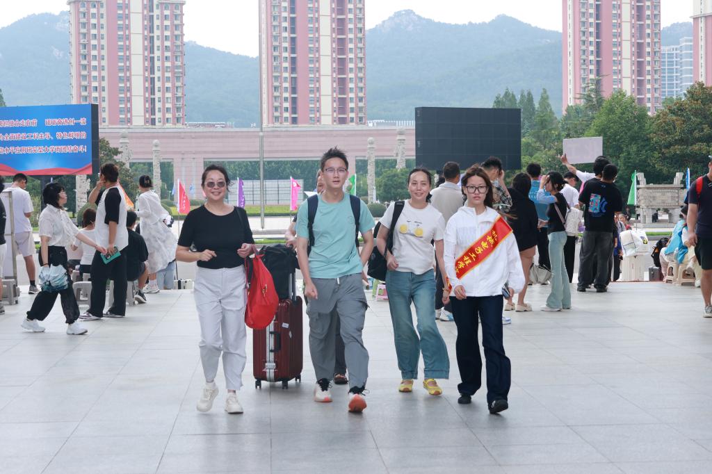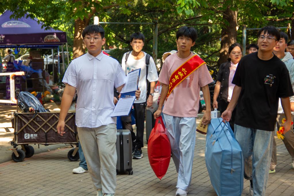 迎新日,迎新工作成员早早守候在报到点,有的举着“机电欢迎你”的手牌引导新生,有的蹲身为新生搬运沉重的行李箱,有的捧着“新生答疑手册”耐心解答疑问……从晨光熹微到暮色四合,“红绶带”与“蓝帐篷”交织成校园里最温暖的风景线,用默契协作与贴心服务,为661名“小妖”铺就了一条温暖的“入学路”。