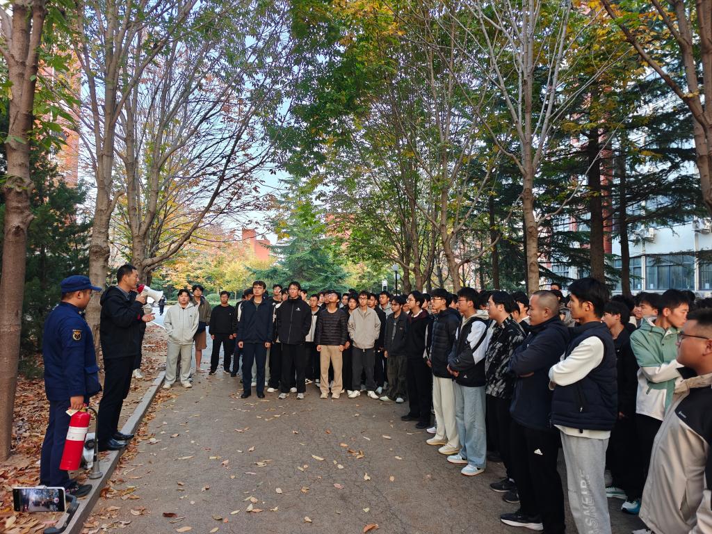 随后进入实战培训环节,学院特邀安全管理处消防科邵建华老师主讲。邵老师围绕“宿舍安全用电”“实验室消防安全”等,讲解火情应急流程,重点演示了手提式干粉灭火器“提、拔、握、压”操作及消火栓使用方法。师生依次实操体验,切实掌握初起火灾扑救技能。