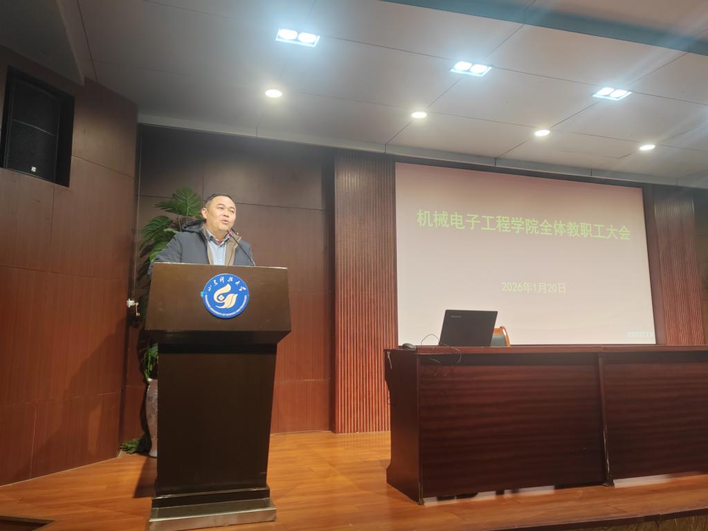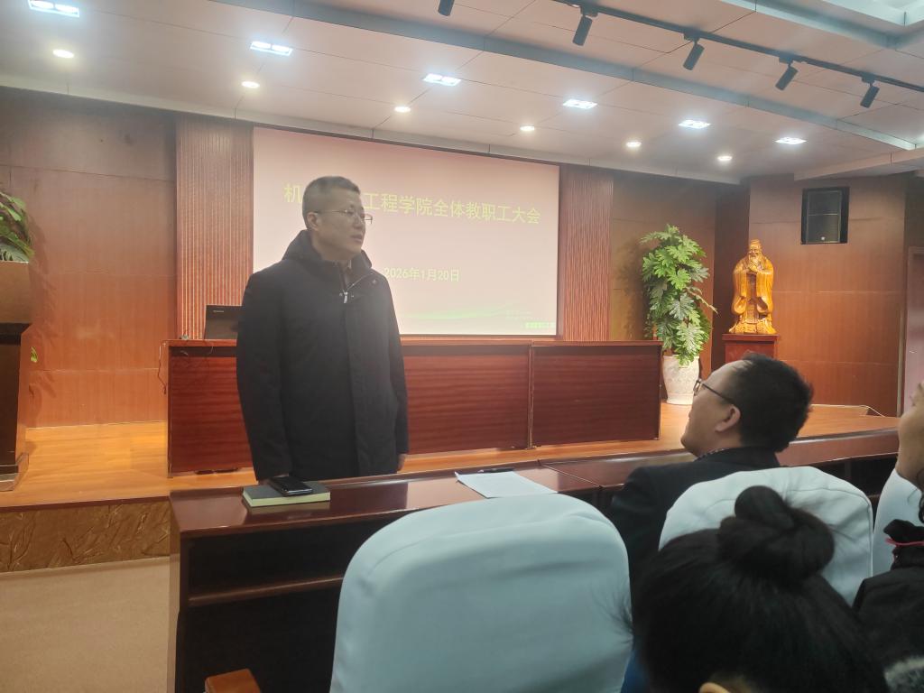 经理张强从党建、教学、科研、团队建设、人才工作、联系我们、对外合作等方面,对学院2025年的工作作了总结,并对学院2026年的重点工作进行了部署,强调要一要做好机械工程专业博士点申报、新一轮学科评估等工作;二要强化学院科研方向凝练和内涵建设,各科研方向做好“传、帮、带”工作;三是加强专业建设,认真推行专业认证,做好低空经济现代产业学院的建设工作;四是继续强化国际化工作。