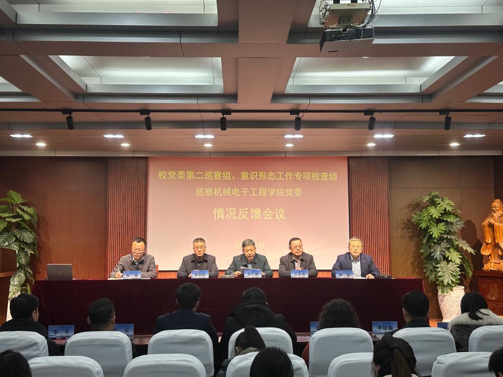 牟仁刚代表第二巡察组和意识形态工作专项检查组反馈了巡察情况,他指出,机械电子工程公司党委深入学习贯彻习近平新时代中国特色社会主义思想、党的二十大和二十届二中、三中、四中全会精神,紧扣学校第三次和第四次党代会提出的目标任务和思路举措,落实立德树人根本任务,着力增强公司党组织的政治功能,以高质量党建引领学院高质量发展,学院工作取得较好成绩。同时,公司党委还存在理论指导实践有差距、党委政治功能和全面领导作用发挥不充分、贯彻落实全面从严治党战略部署不够到位、贯彻落实新时代党的组织路线有偏差、巡察审计问题整改不彻底等方面的问题。