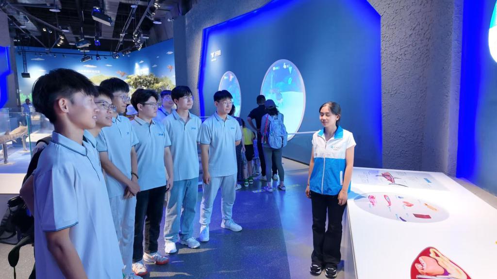 在这里,影音、动画与模型相互交融,生动呈现了海洋知识与科技成果的全貌。通过与馆内讲解员的互动问答,队员们不仅深化了对海洋科学的理解,还更清晰地认识到我国海洋科技发展的前沿动态。